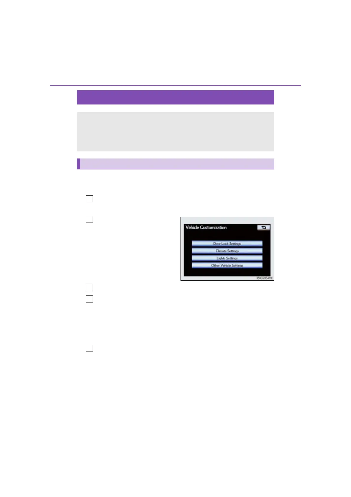 “Vehicle Settings” screen displayed on the Remote Touch screen.