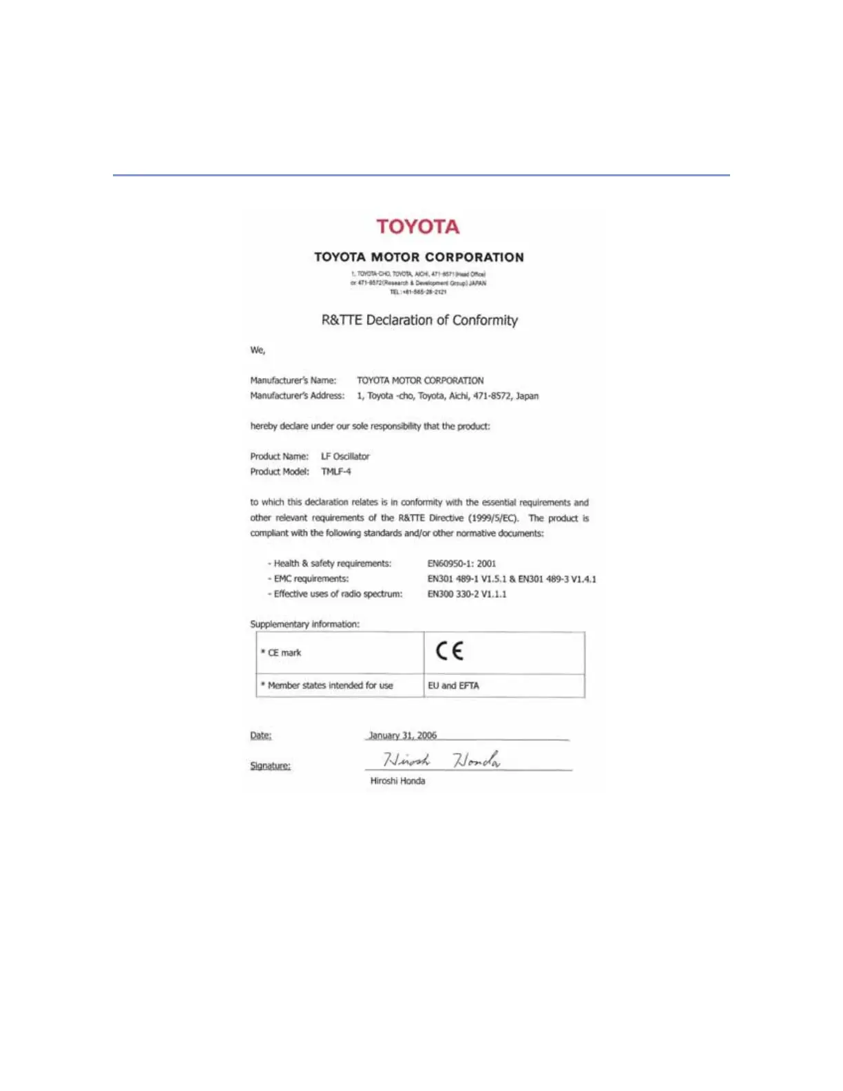 Certification for the smart entry & start system