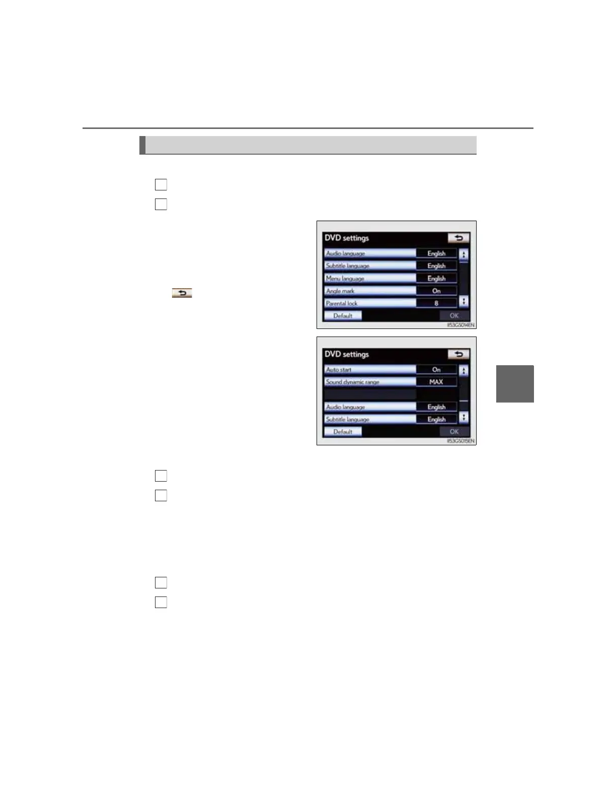 Displaying “DVD settings” screen