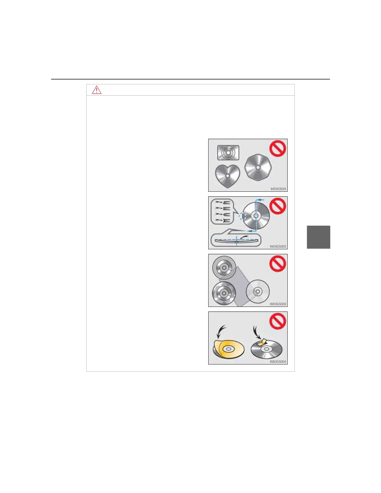 Also, do not use 8 cm (3 in.) disc adapters, Dual Discs or printable discs.