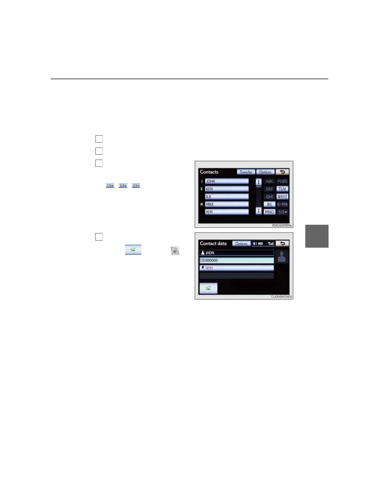 Select “Contacts” on the “Telephone” screen.
