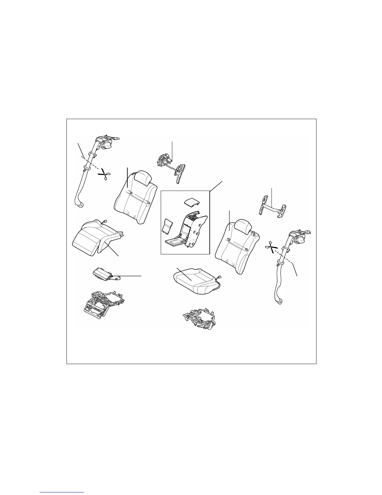 13. Remove the rear seat assembly (Ottoman Power Seat Type).