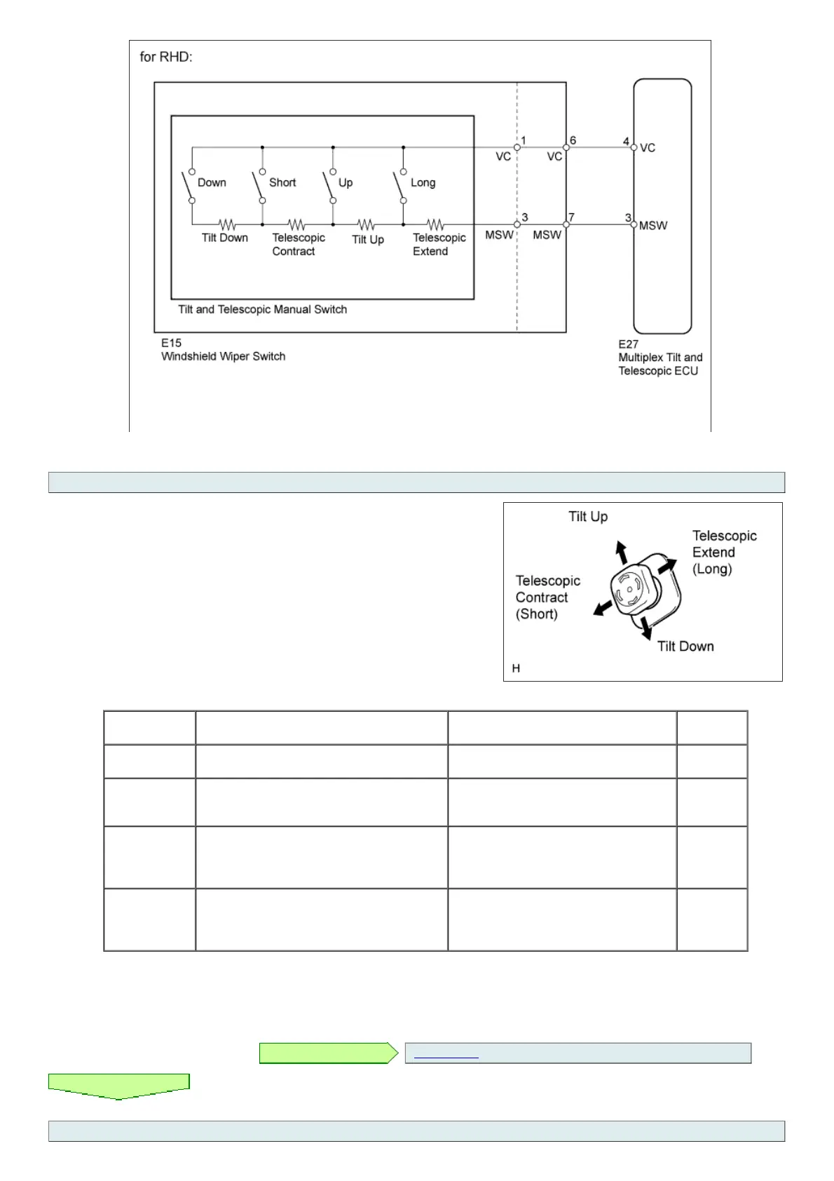 a. Use the Data List to check if the tilt and telescopic manual switch is functioning