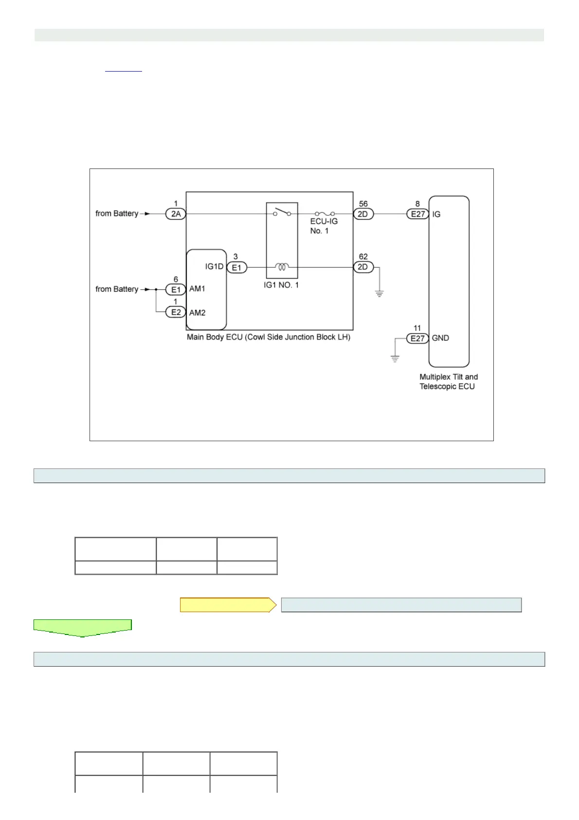 When the engine switch is turned on (IG), the IG power source circuit supplies positive (+) voltage to the multiplex tilt and telescopic ECU.