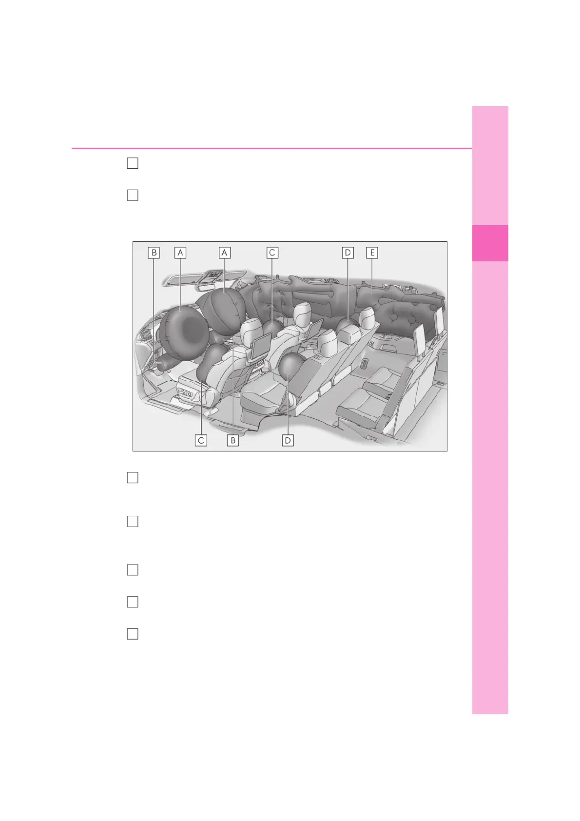 Q Location of the SRS airbags (5-passenger and 7-passenger models)