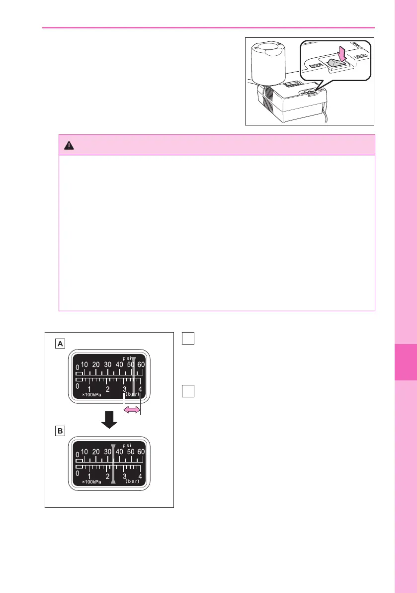 or deformation in the tire, turn off the compressor switch and stop the repair