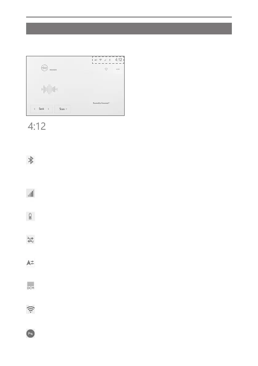The time and icons with information about communication statuses are displayed