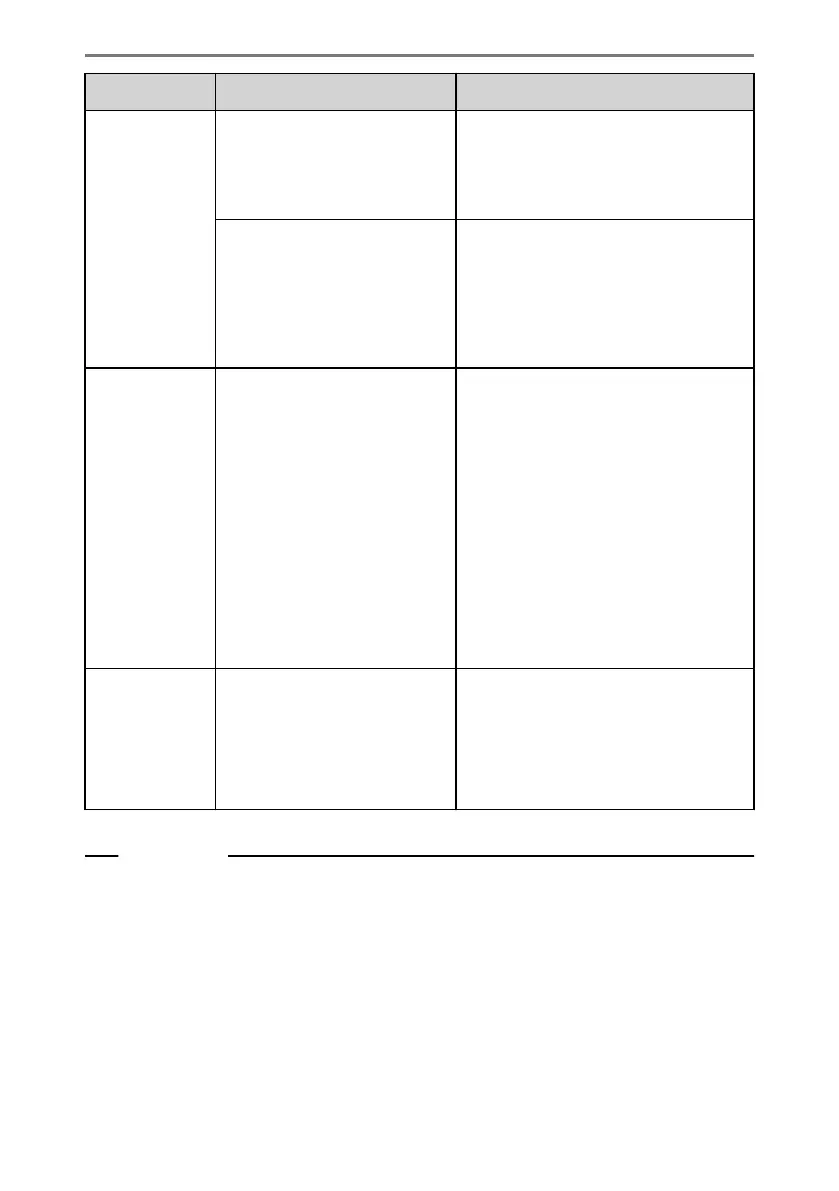 Symptom Likely cause Solution