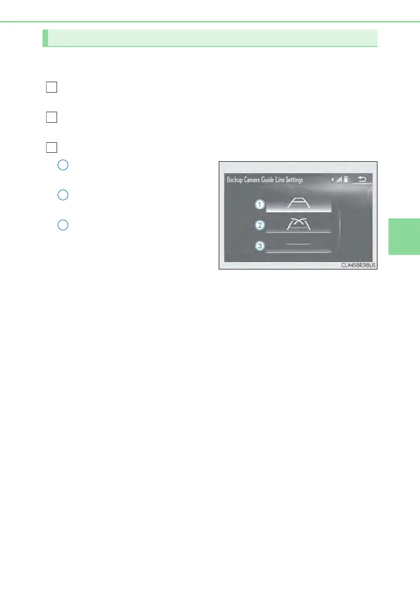 Select “Vehicle”, and then select “Backup Camera Guide Line Settings” on
