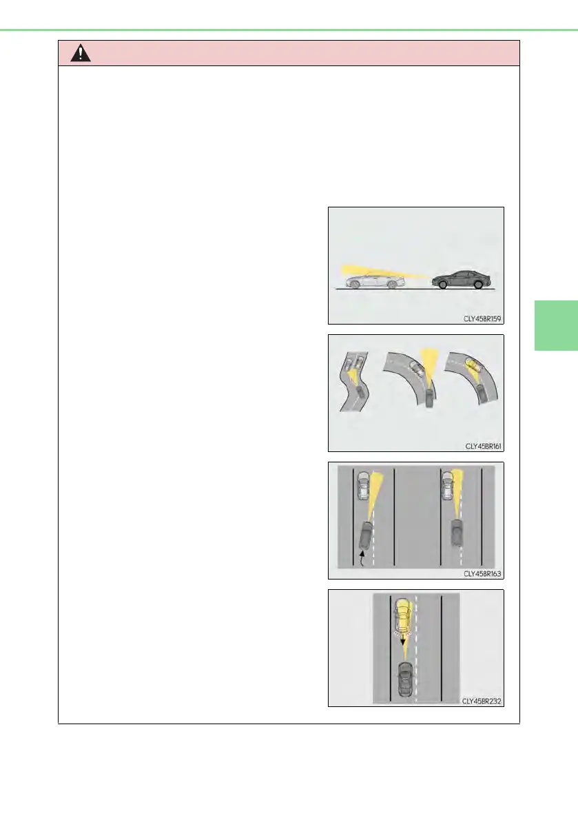as necessary in the following conditions as the radar sensor may not be able to cor-