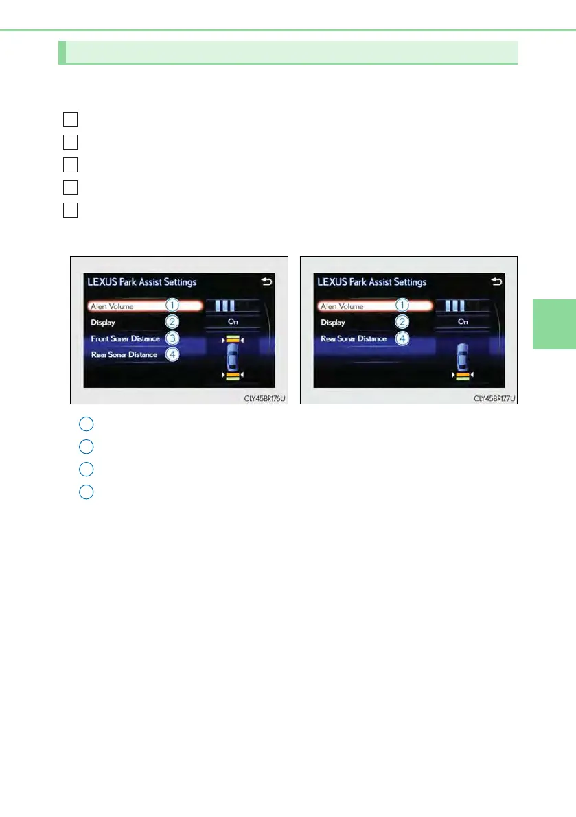 Select “LEXUS Park Assist” on the “Vehicle Settings” screen.