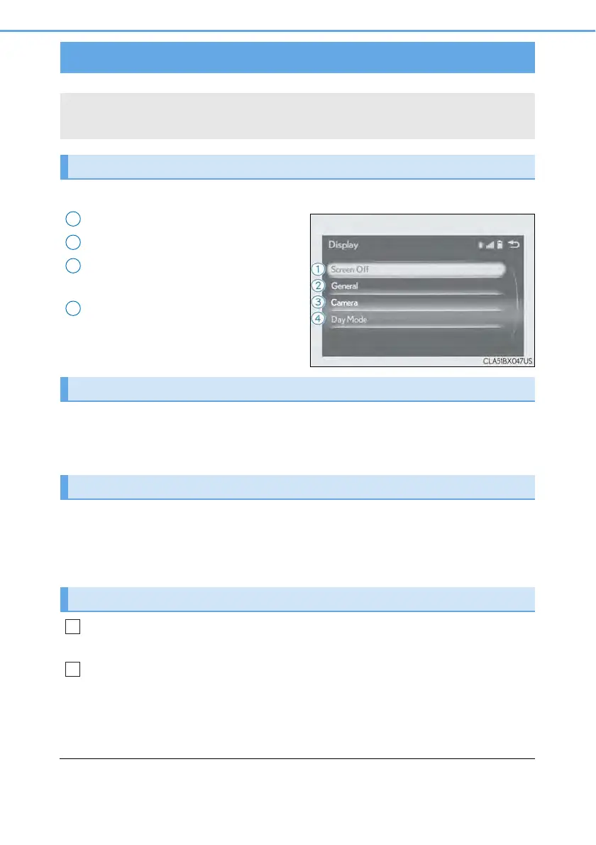Select “General” or “Camera” on the “Display” screen or select “Display” on