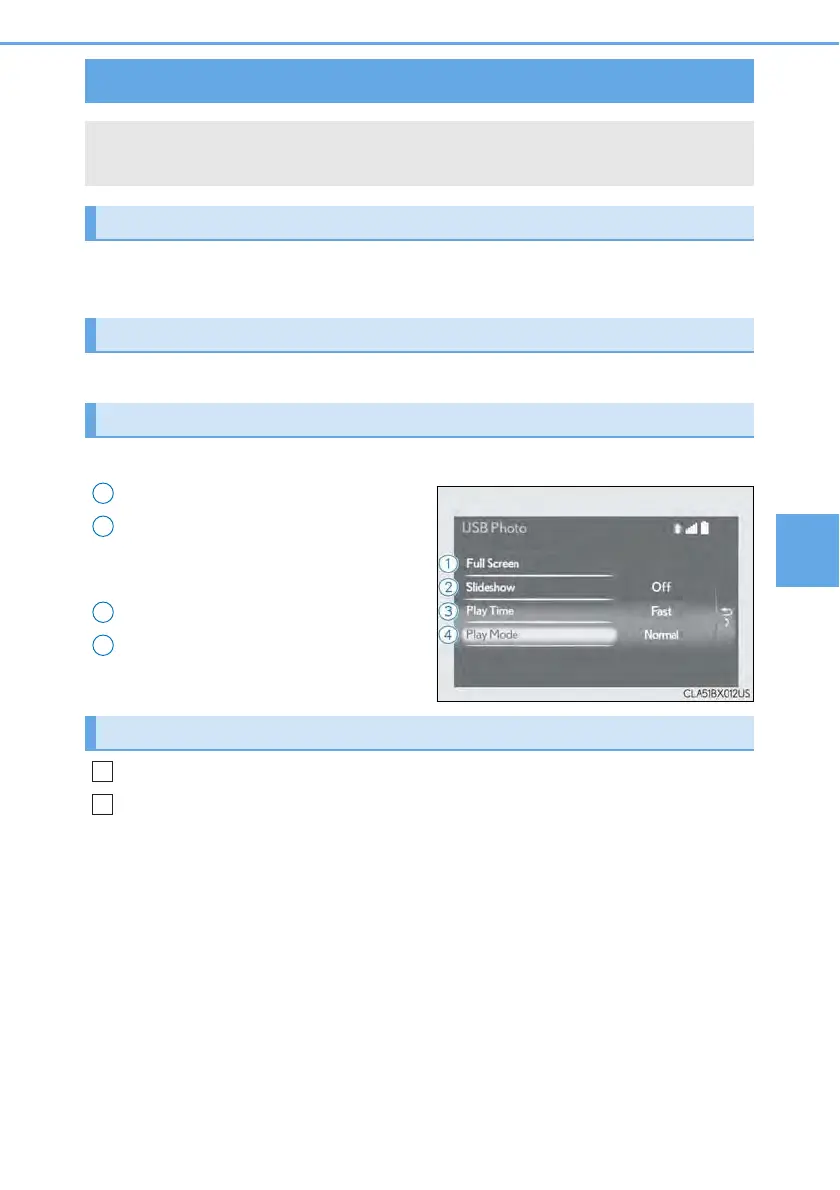 Connecting a USB memory device enables you to enjoy photo on the Lexus
