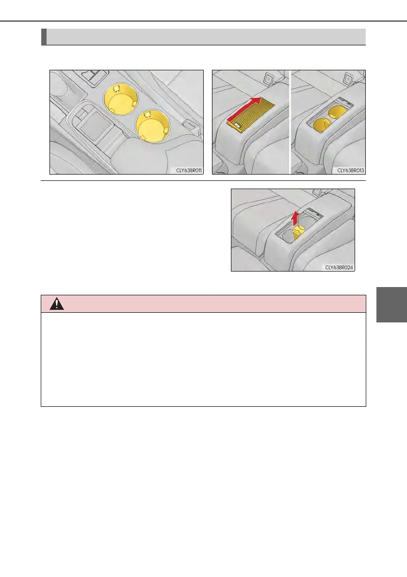 Do not place anything other than cups or aluminum cans in the cup holders.