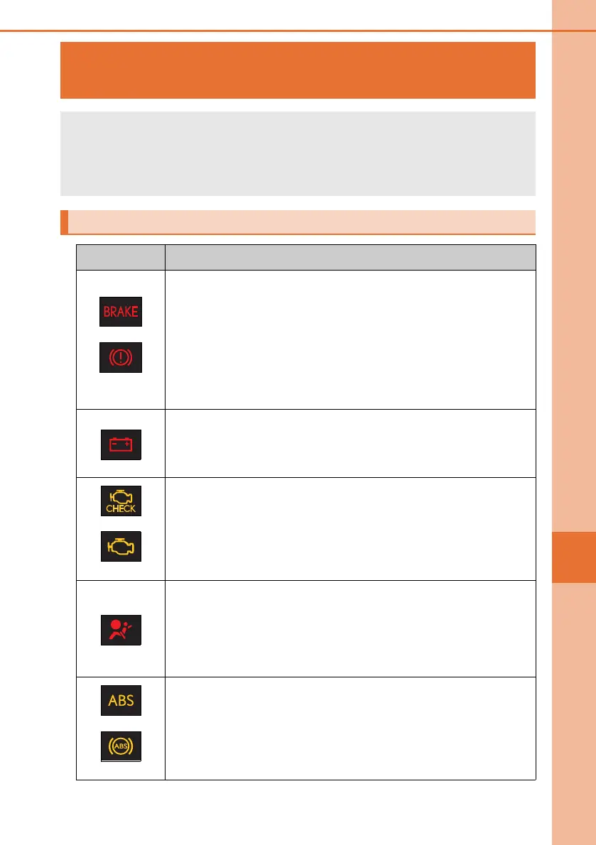 Calmly perform the following actions if any of the warning lights comes on or