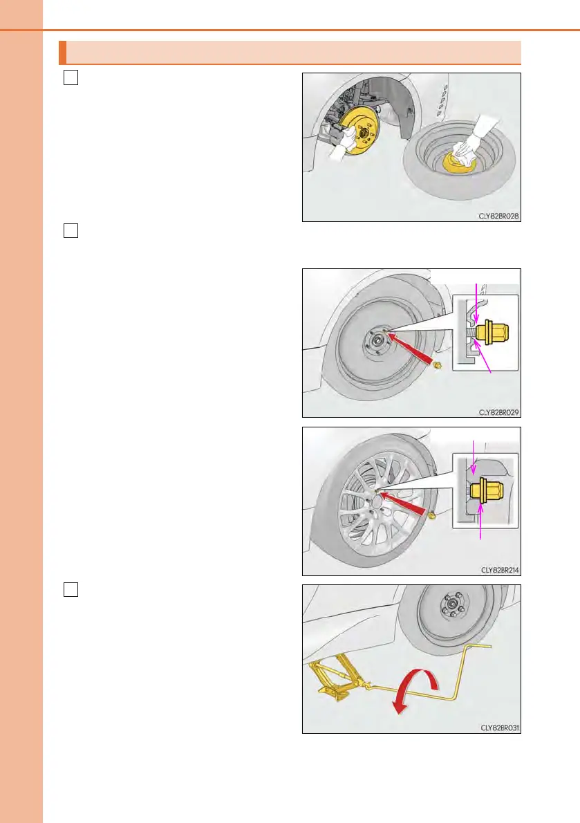 Install the spare tire and loosely tighten each wheel nut by hand by approxi-