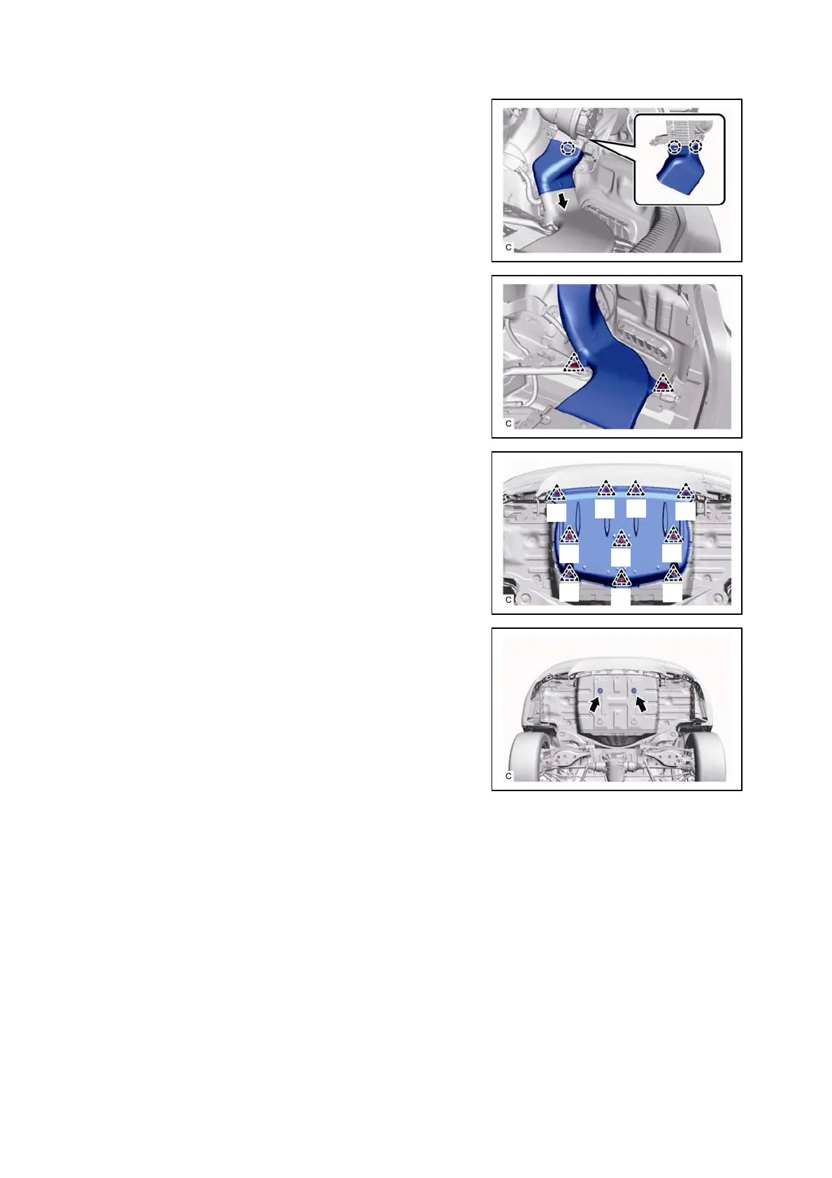 (2) Disengage the 6 clips (B) to remove the No. 1 floor