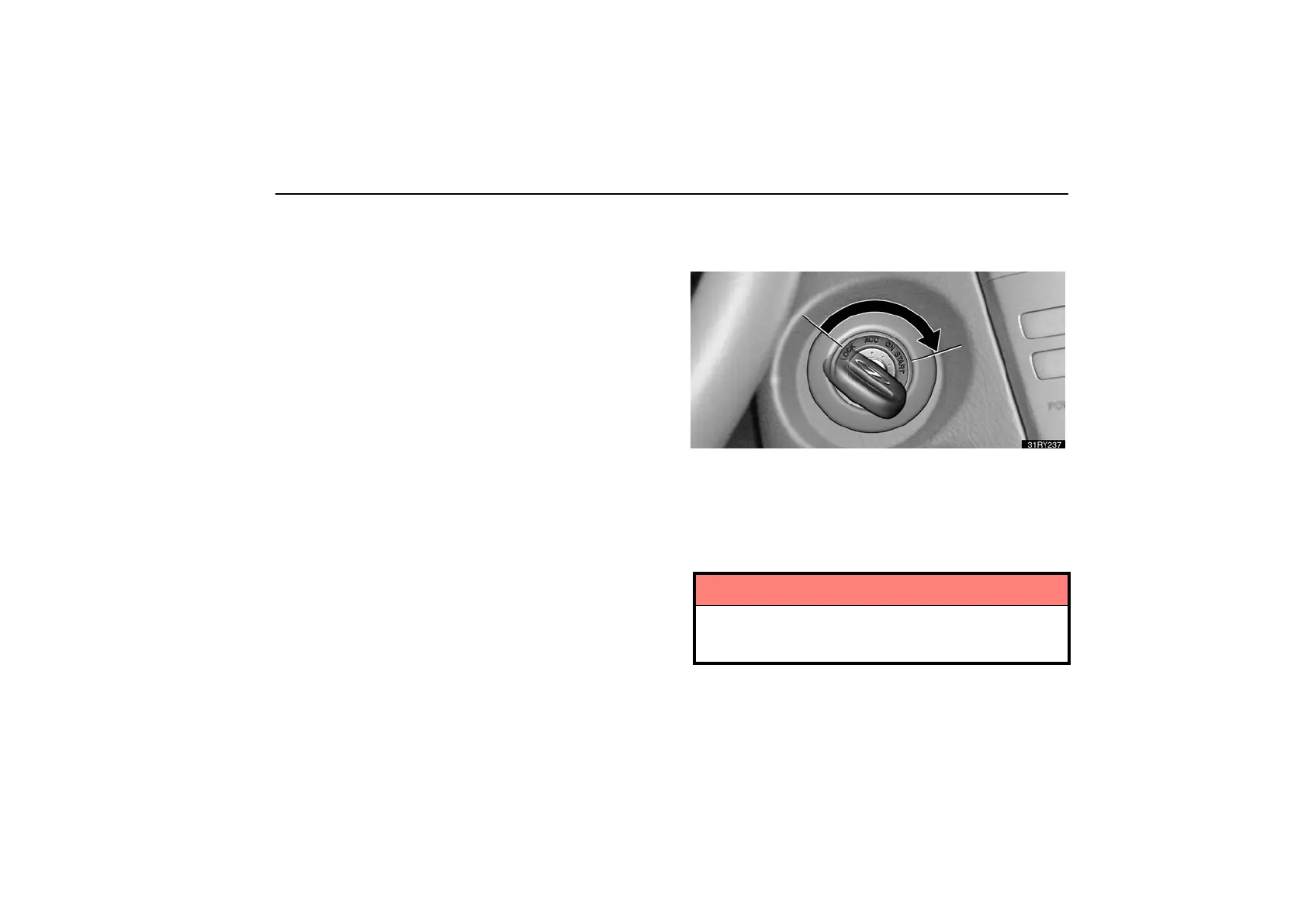 “START” — Starter motor on. The key will return to the