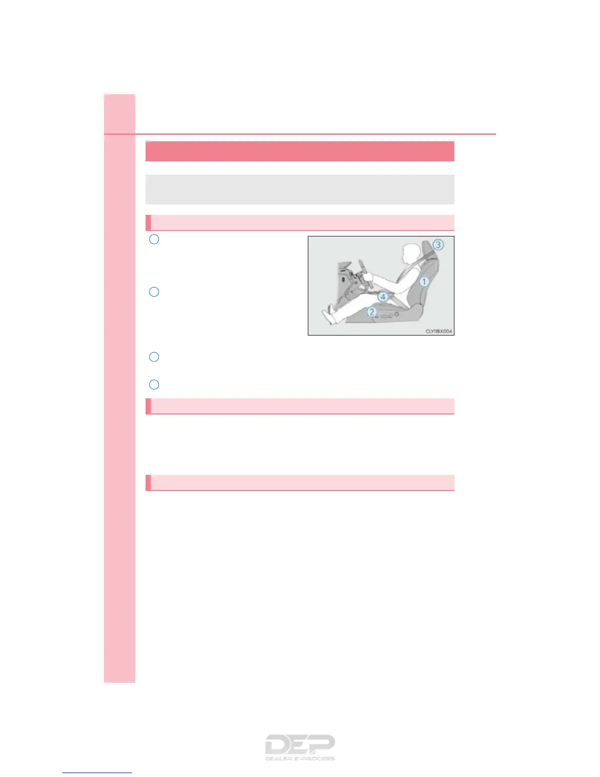For safe driving, adjust the seat and mirror to an appropriate position before