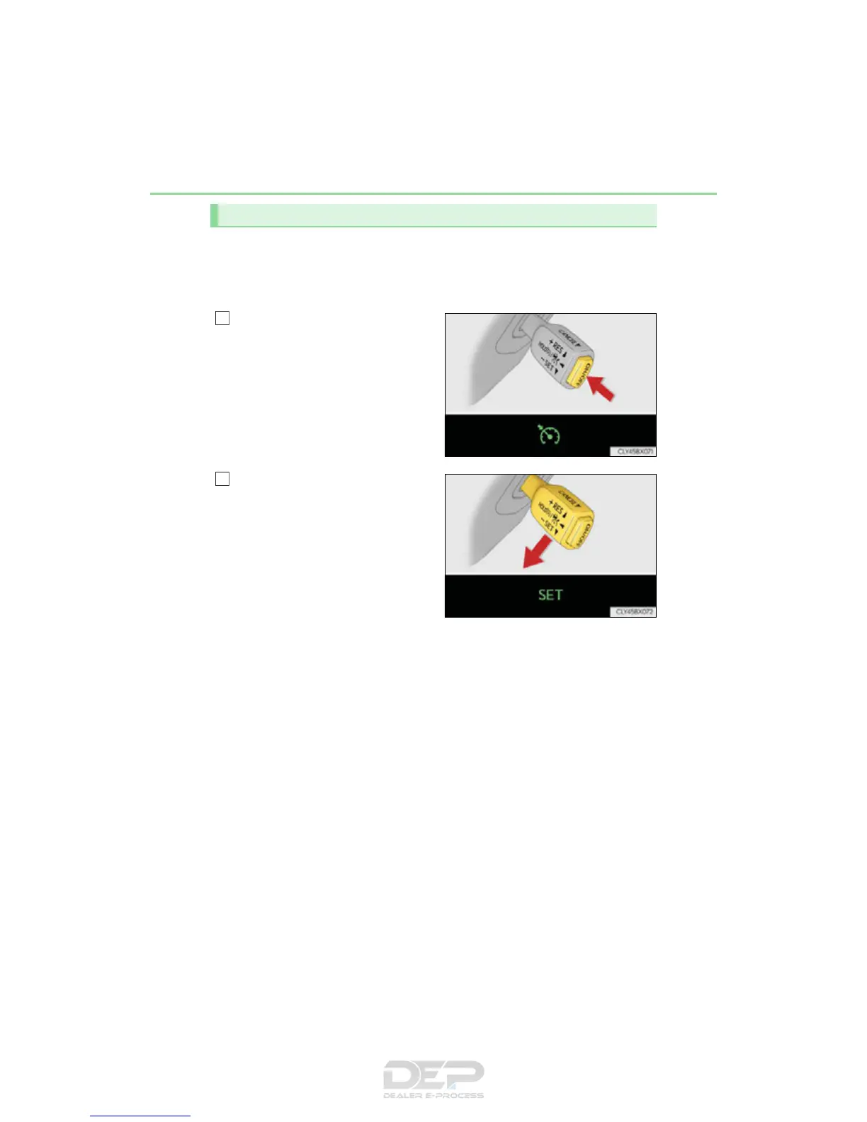 Cruise control “SET” indicator will come