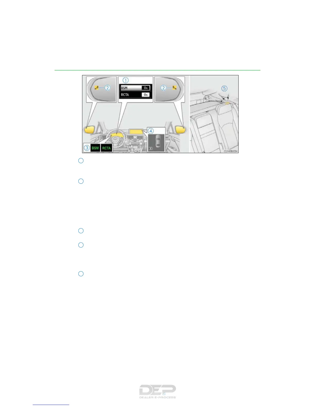 Turning the BSM function/RCTA function on/off. (P. 357)