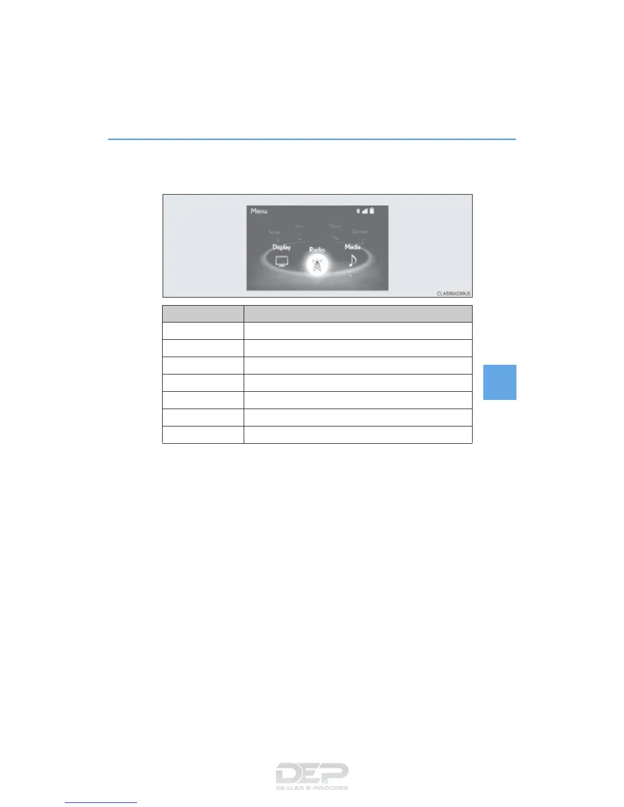 “Radio” Display the radio top screen (P. 416)