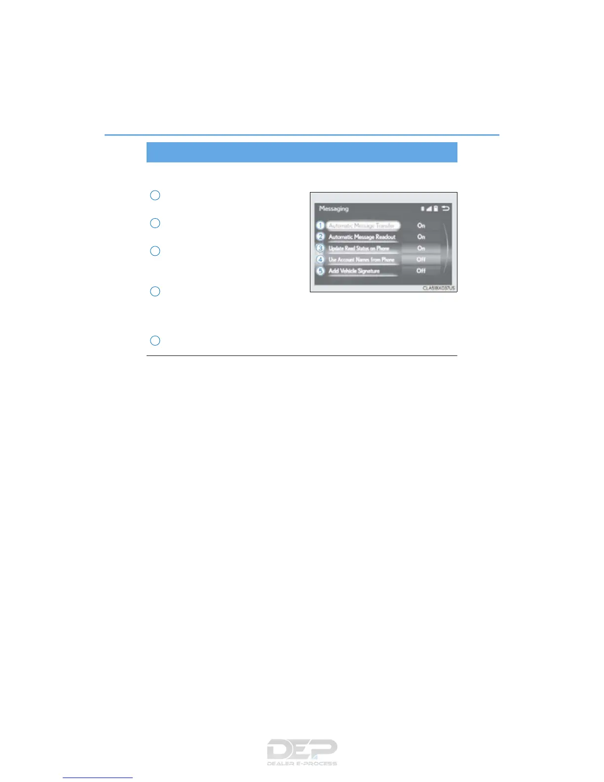 Go to “Messaging”: “MENU” button “Setup” “Phone” “Messaging”