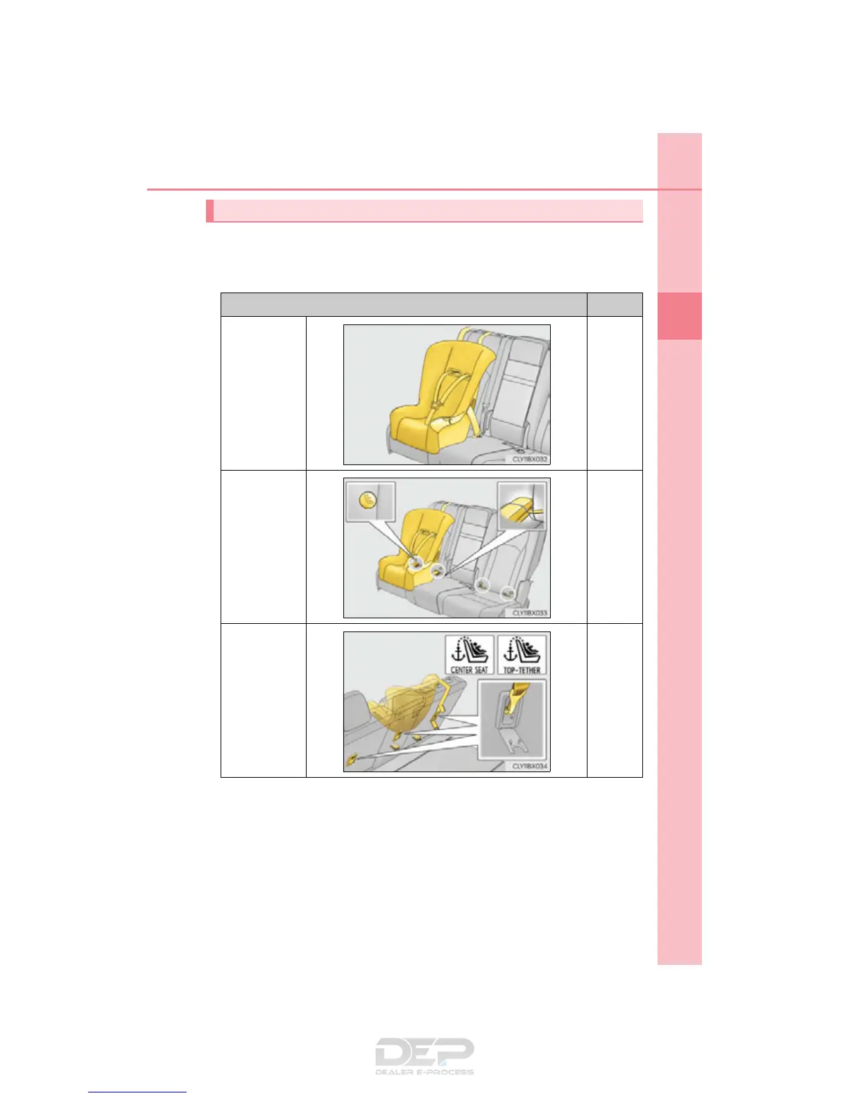 Types of child restraint system installation methods