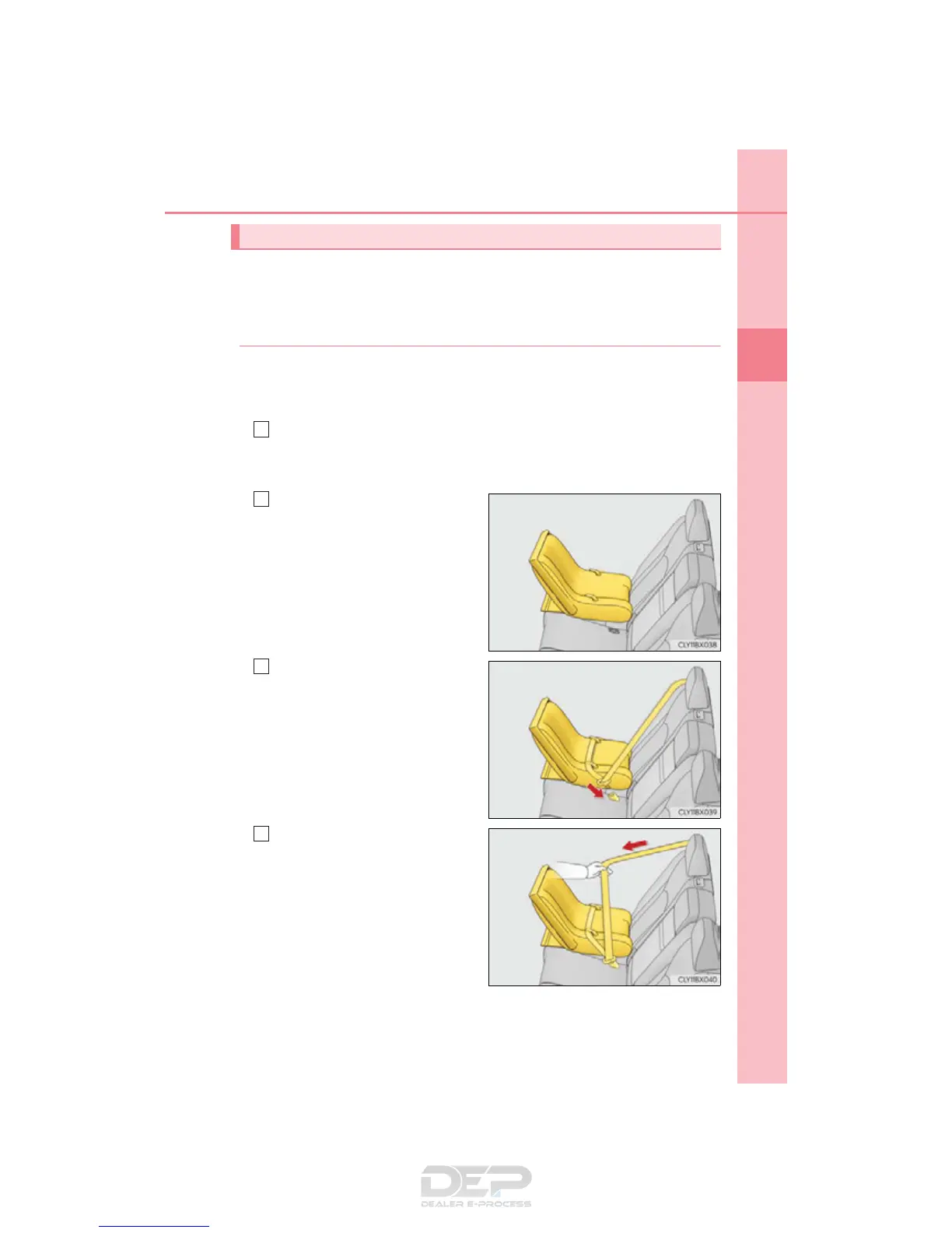 ◆ Installing child restraint system using a seat belt (child restraint lock func-