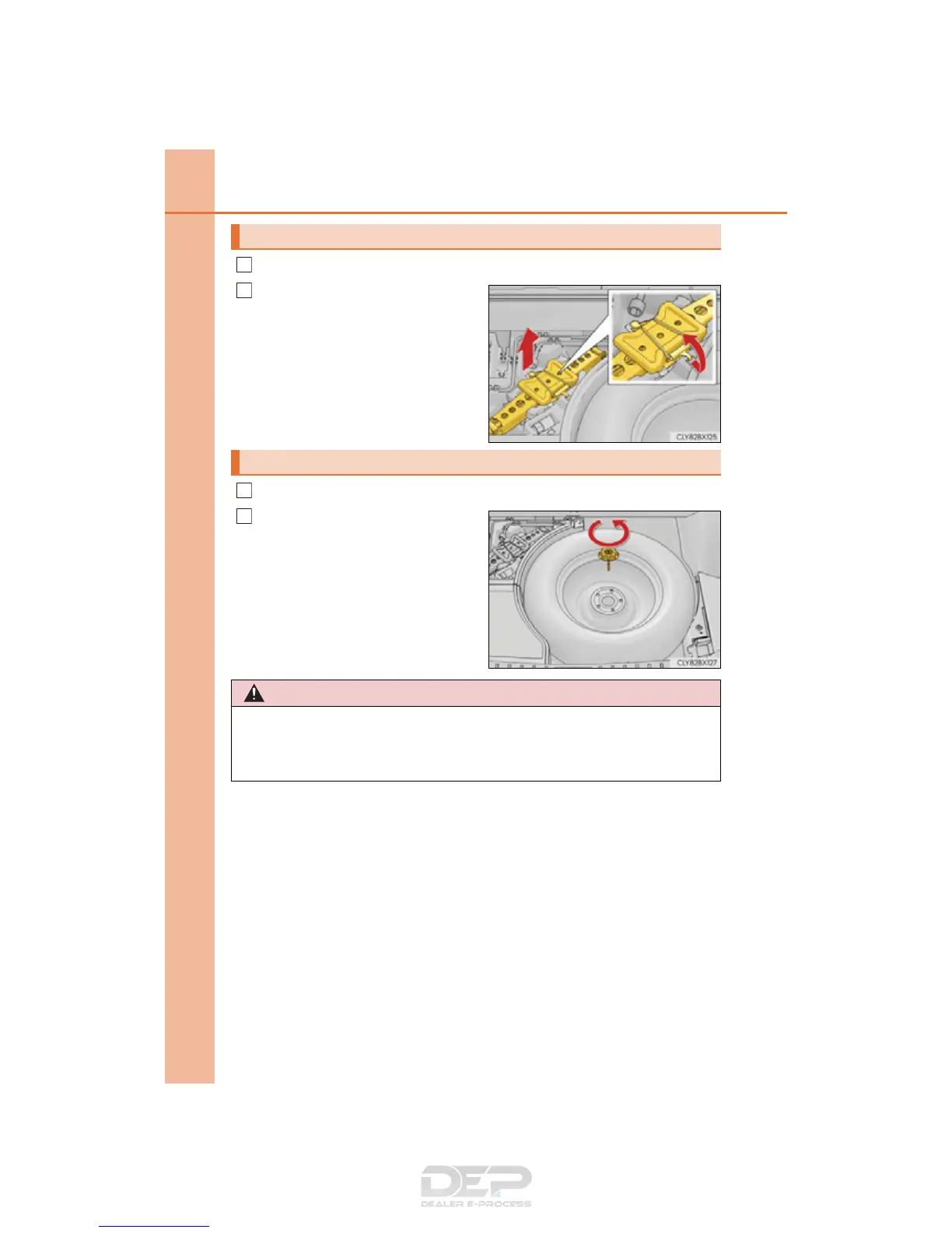 Be careful not to catch fingers or other body parts between the spare tire and the body
