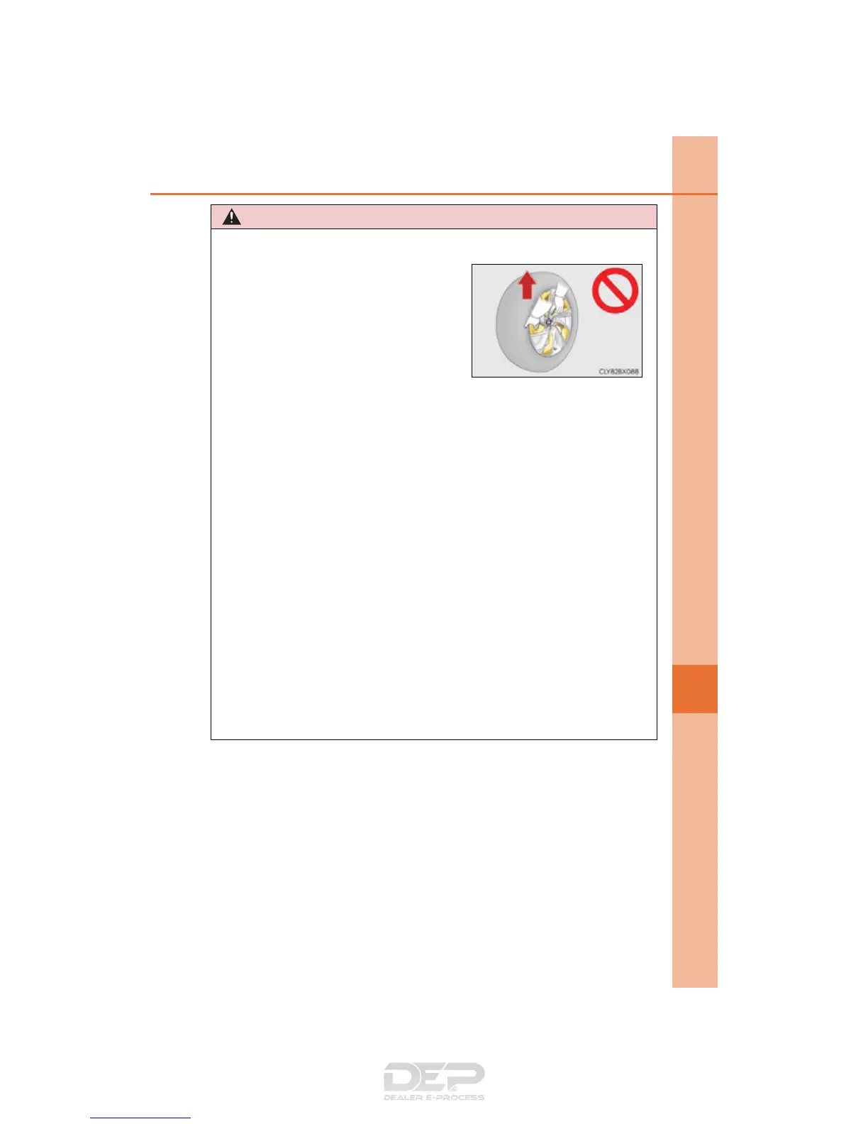 • When installing a tire, only use wheel nuts that have been specifically designed for