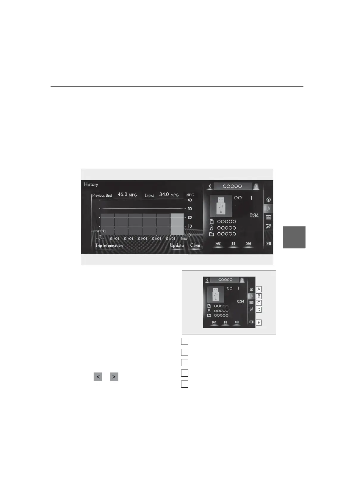 fuel consumption information screen is being displayed. The large screen on the