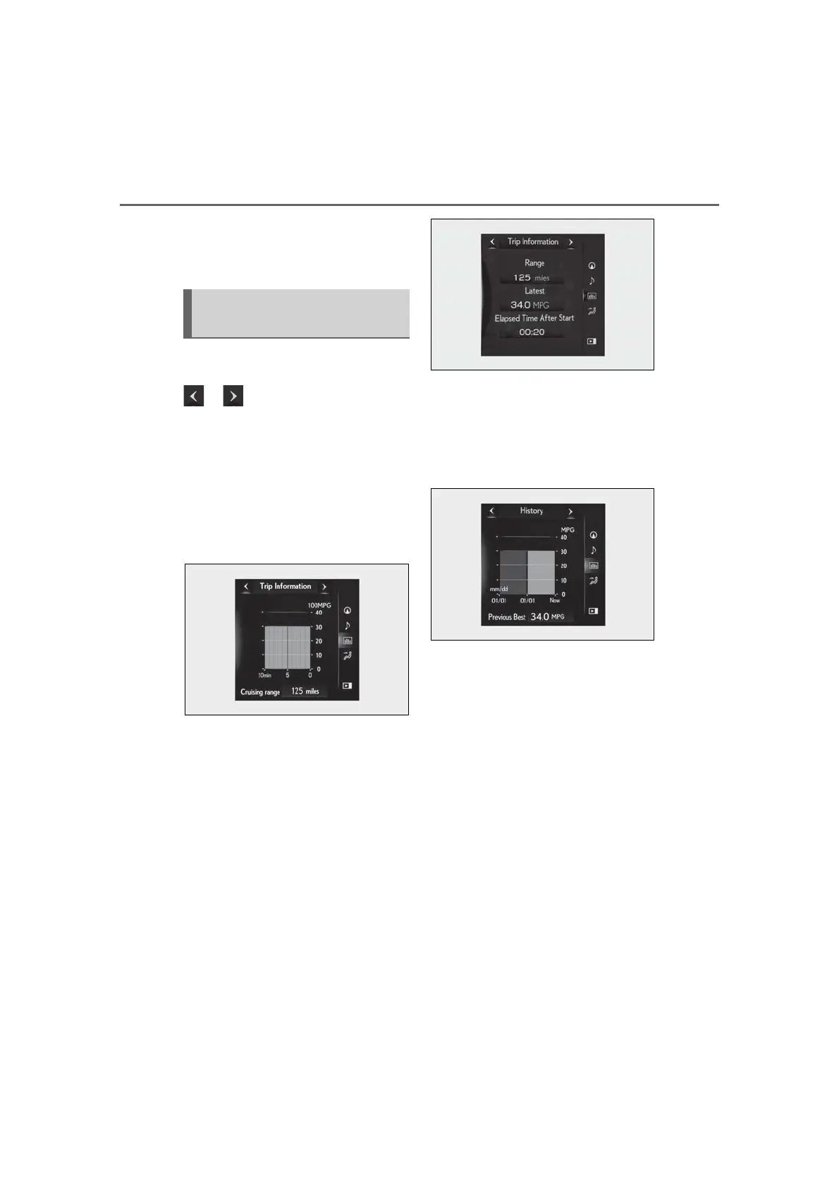 Displays the cruising range, latest fuel