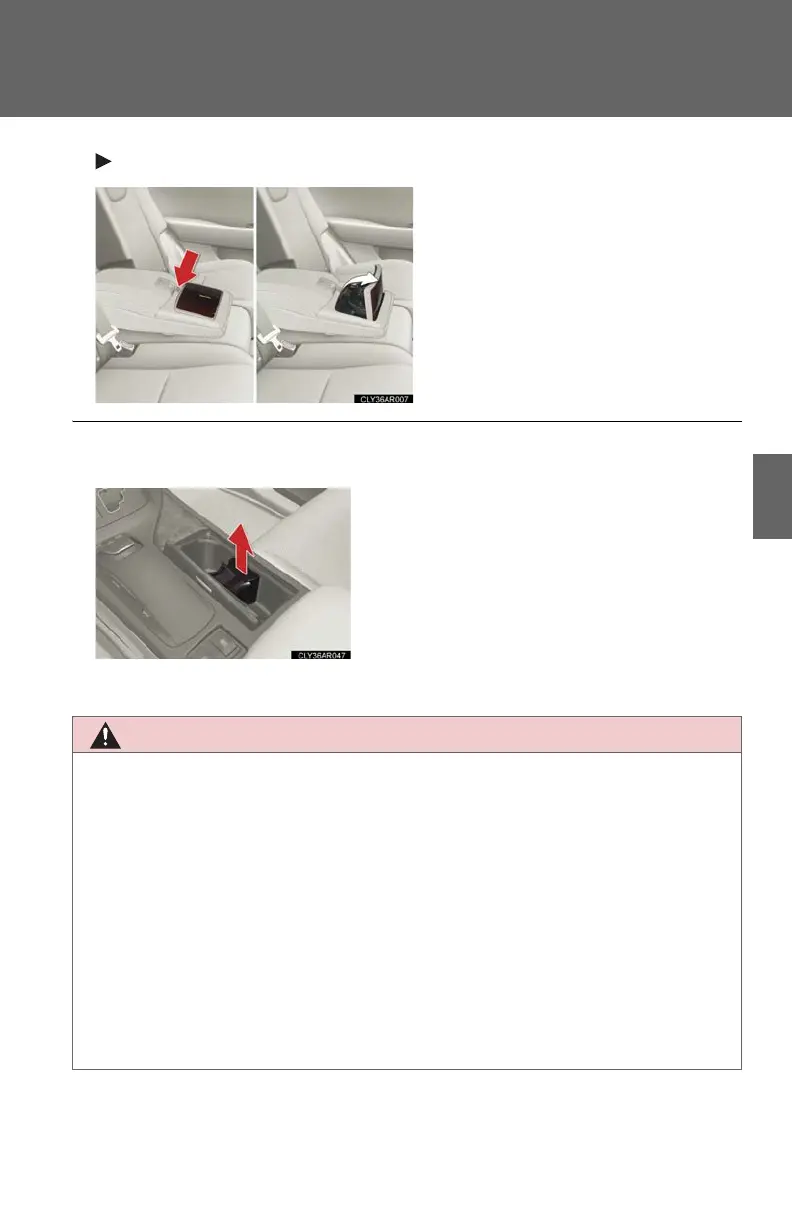 Do not place anything other than cups or beverage cans in the cup holders. Even