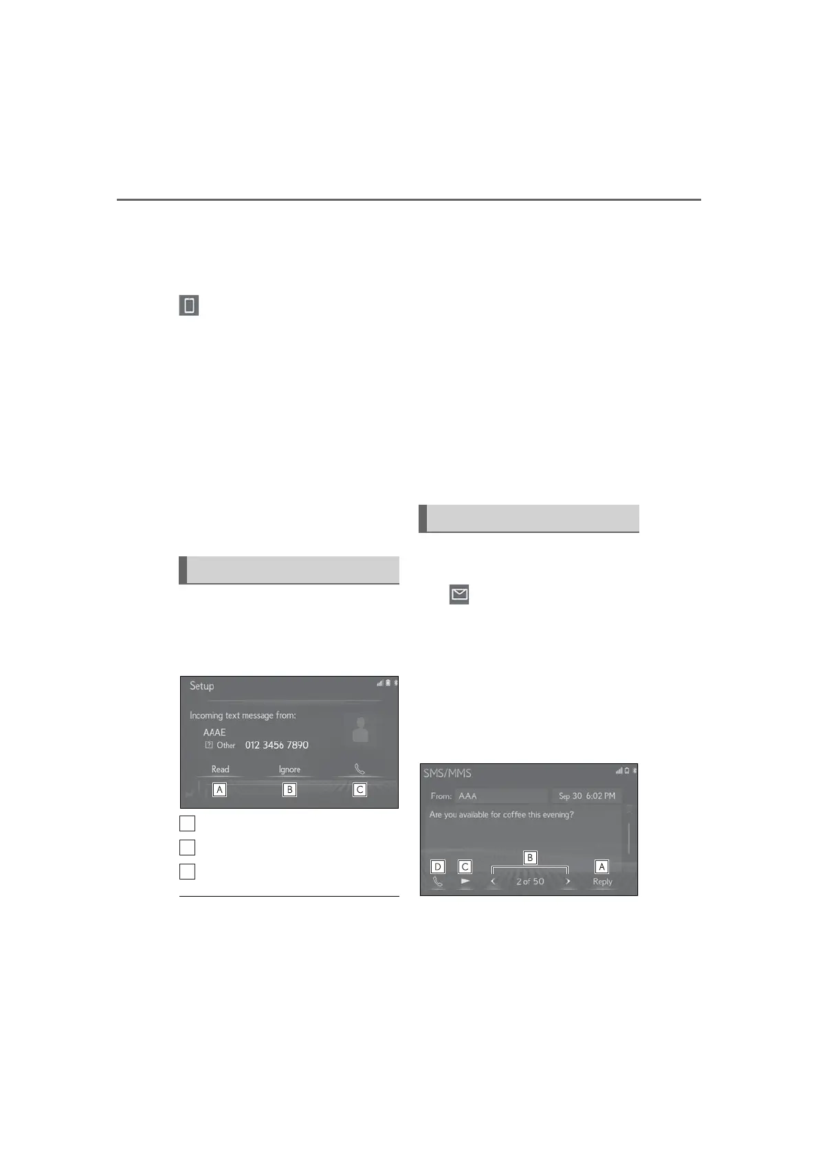 SMS/MMS Display” and “Incoming