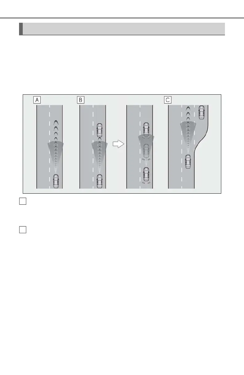 When the vehicle ahead of you stops, your vehicle will also stop (vehicle is stopped by sys-