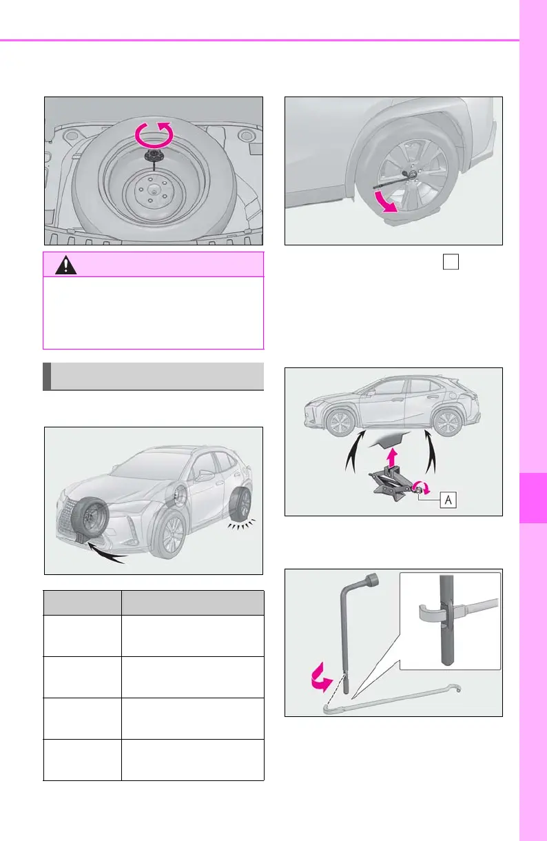 3 Turn the tire jack portion by