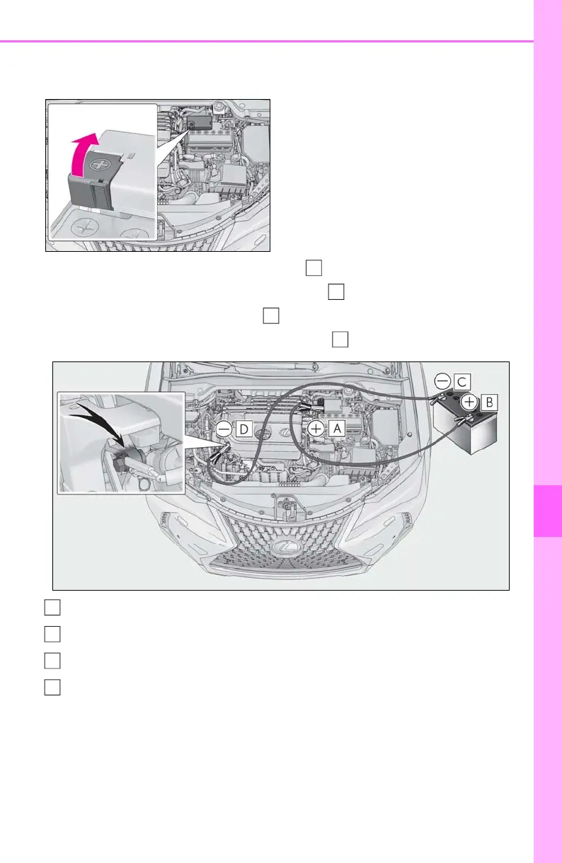 4 Connect a positive jumper cable clamp to on your vehicle and connect the