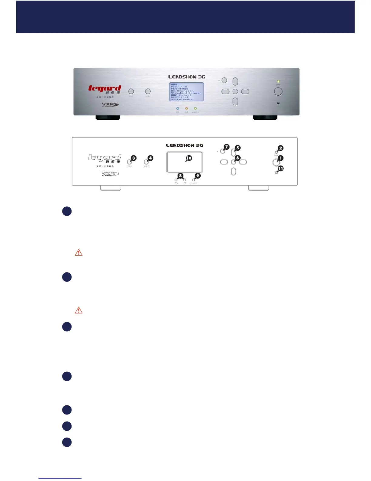 Caution: Never unplug the power plug when Leadshow 3G is running.