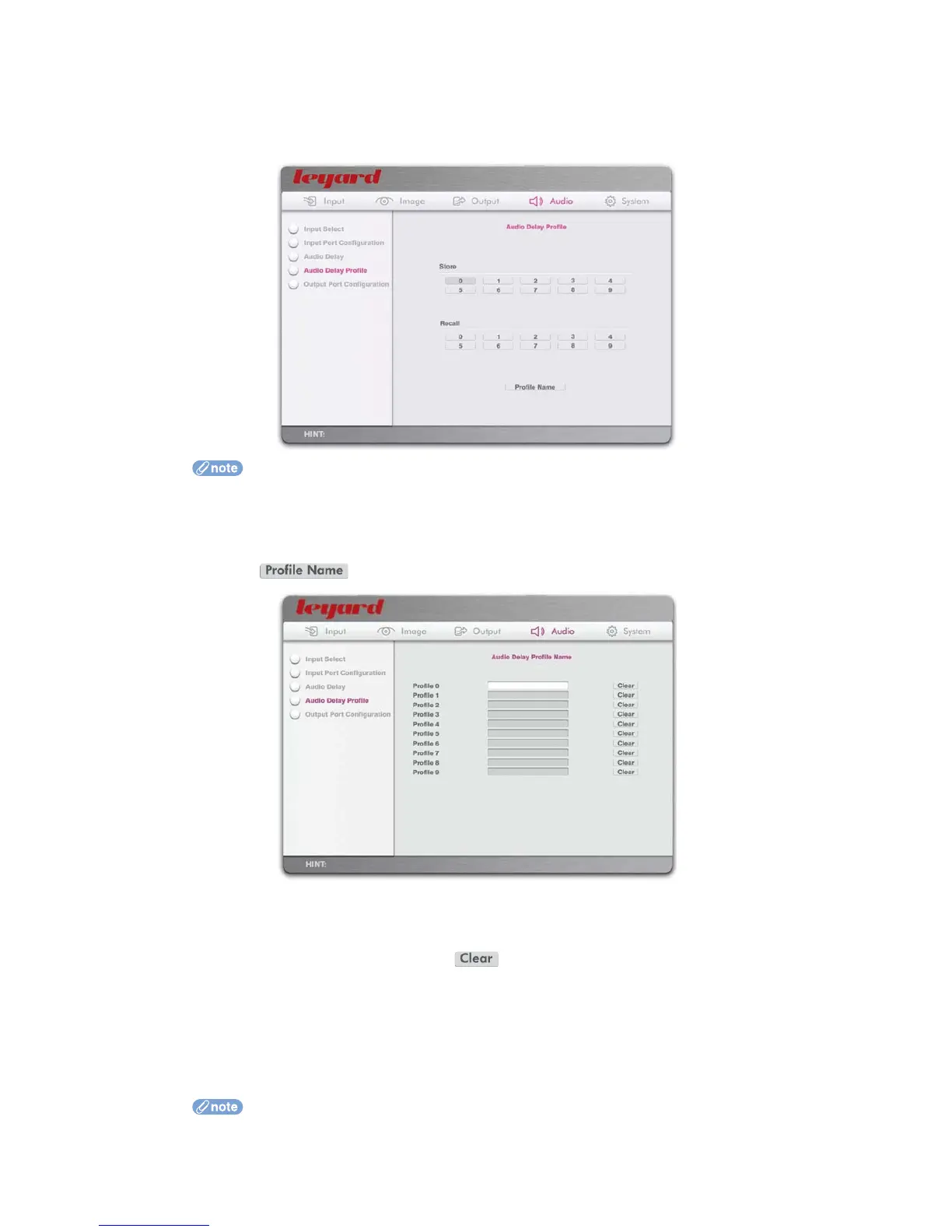 Recall any audio delay profile by pressing the desired profile number under Recall