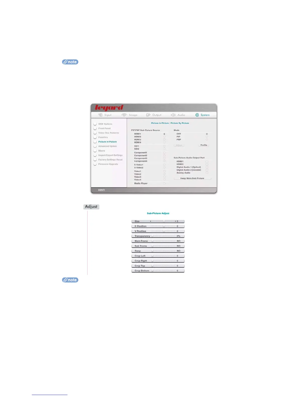 You can also define any audio output port as the output of sub-picture audio. In this