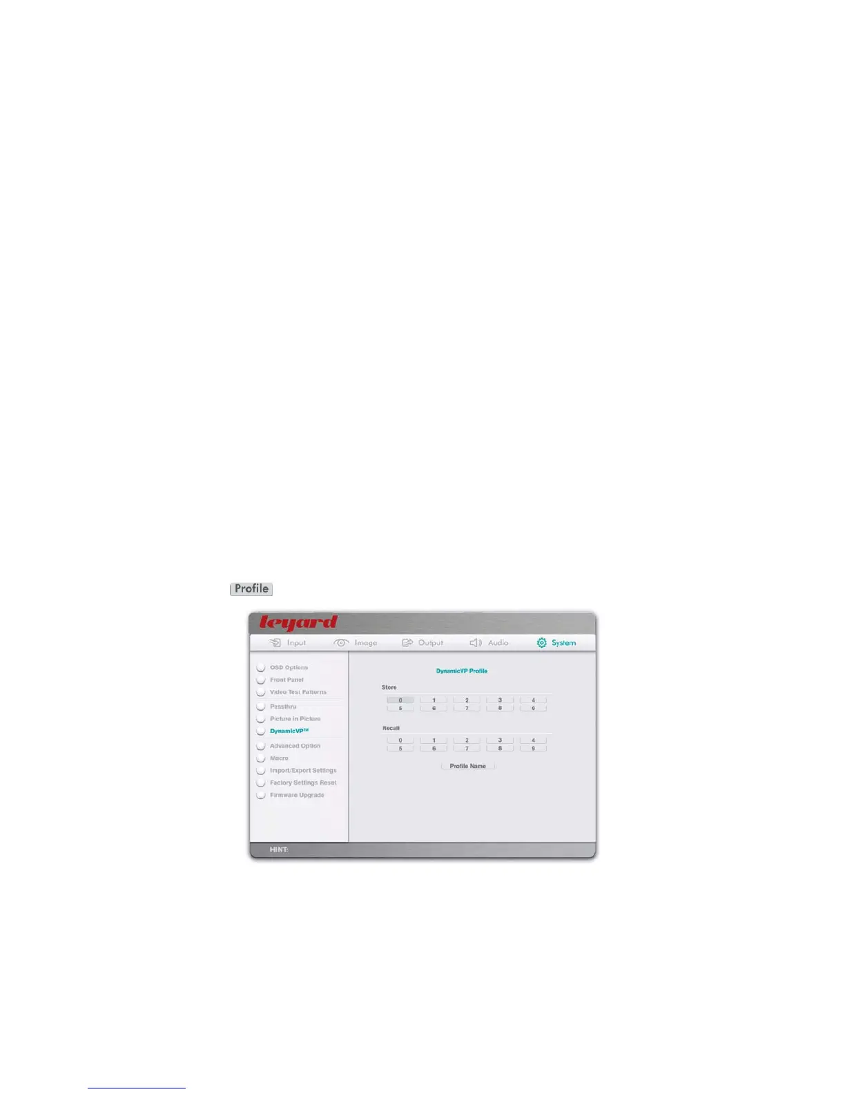Action/ResolutionissetDVLoad Gamma Profile,alistofpreviouslysaved