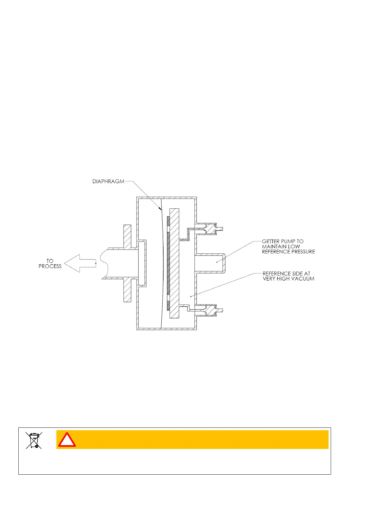 electrode. When the process pressure changes, the diaphragm changes its position with respect to the electrode,