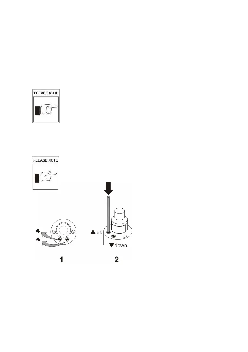 For adjustment first remove the rubber caps from both buttons (1), then -by