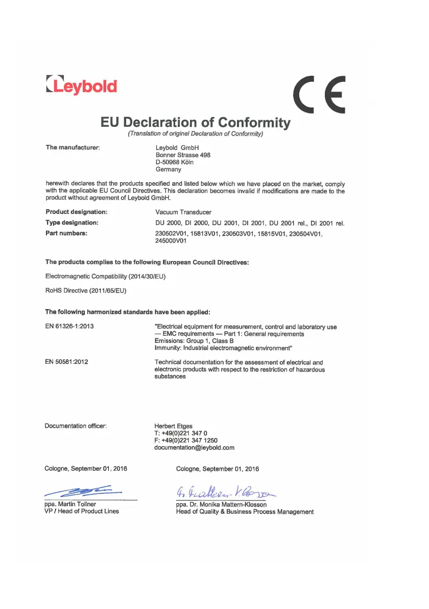 LEYBOLD DI2000 - Declaration of Conformity
