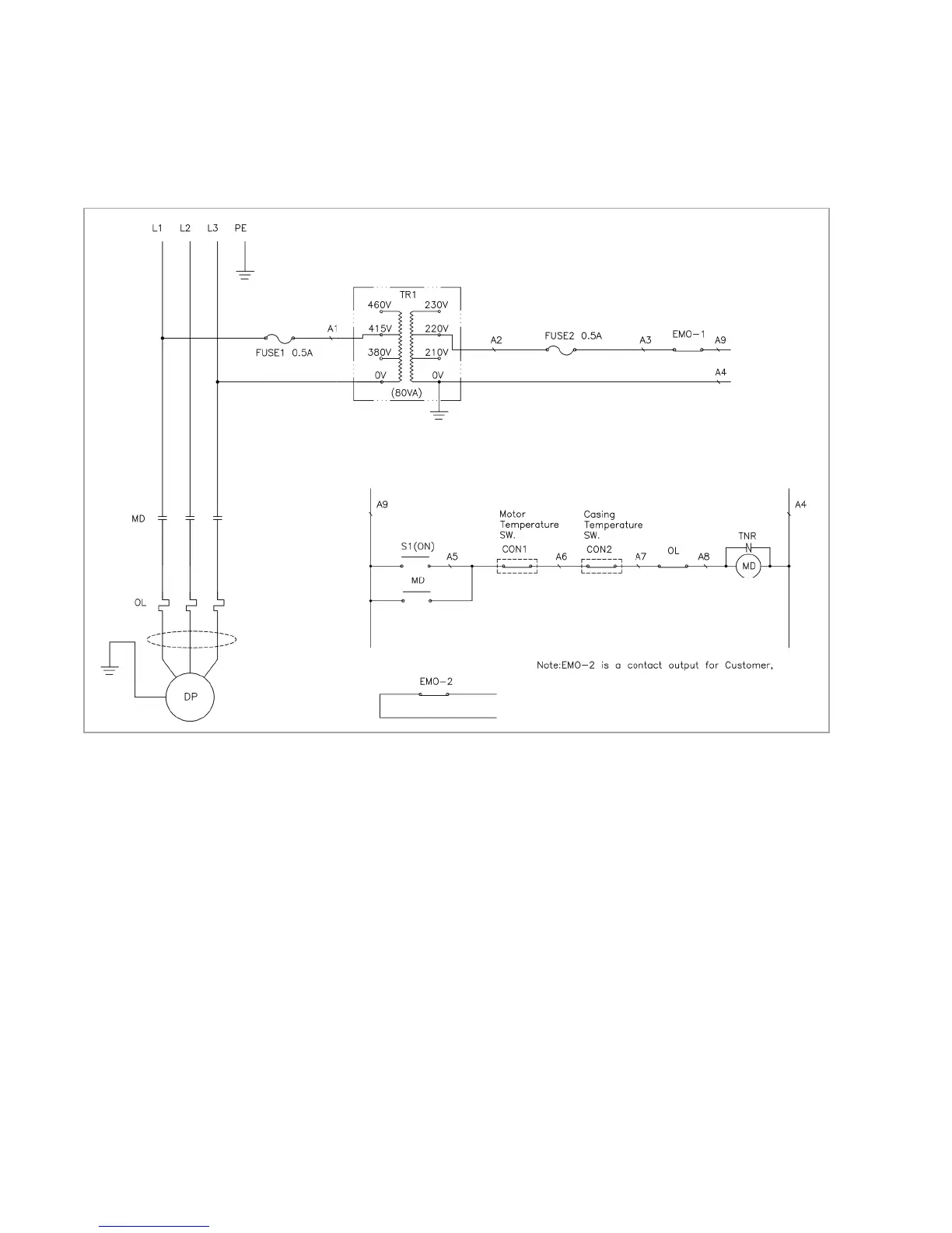 be changed by trained staff from 415 V to 460 V. Output connection of Transformer (A2) stays