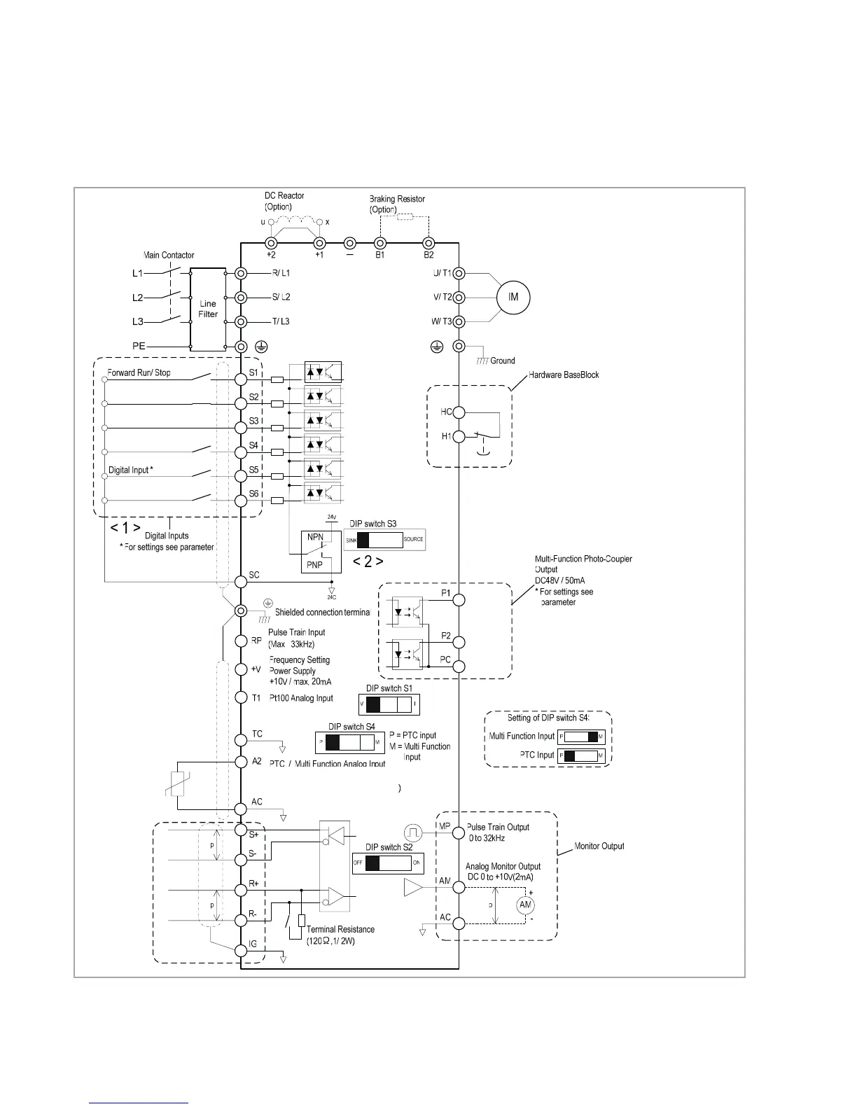 Fig. 3.8 Wiring of the main and control circuits for LEYVACs w/ external frequency converter