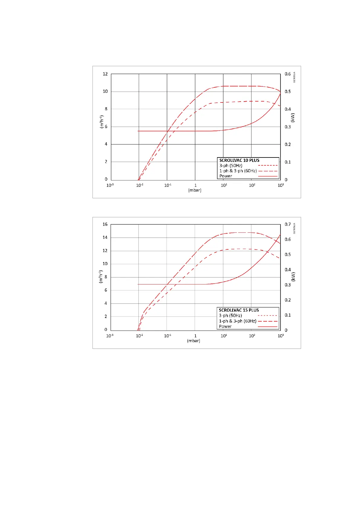 LEYBOLD SCROLLVAC plus - Figure 5. SCROLLVAC 10 Plus Performance Characteristcs; Figure 6. SCROLLVAC 15 Plus Performance Characteristics
