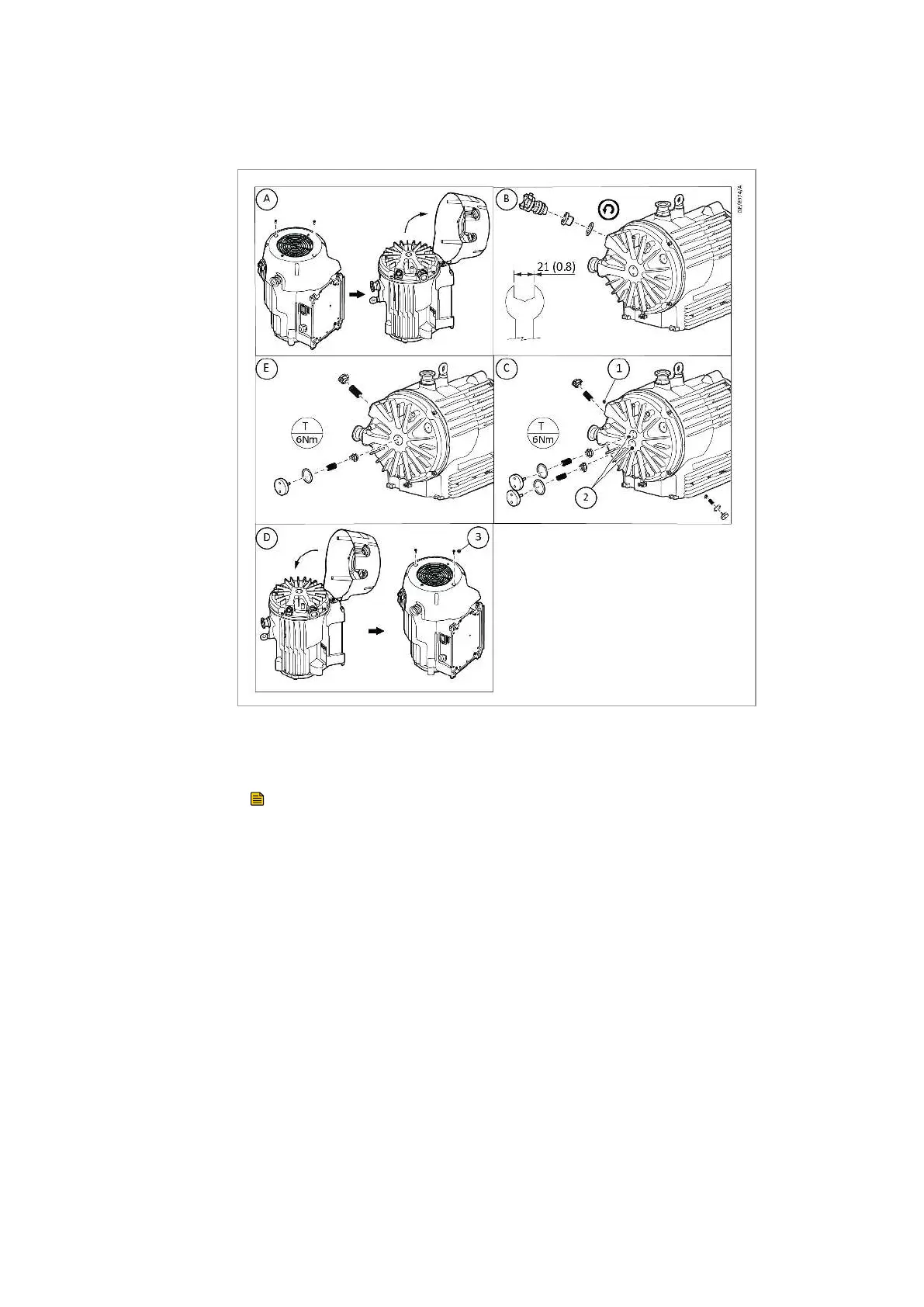 2. Using a 21 mm AF spanner (not supplied), remove the gas ballast2.