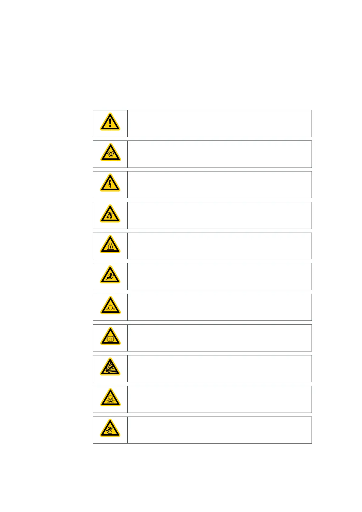 Risk of injury. Identies spilled liquids, trailing cords, pipes and other